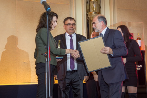 Представителят на спонсора „Кока Кола Хеленик Ботълинг Къмпани България“ АД - г-н Николай Тодоров връчва Декантер от The Maccalan Сингъл Малц Уиски.