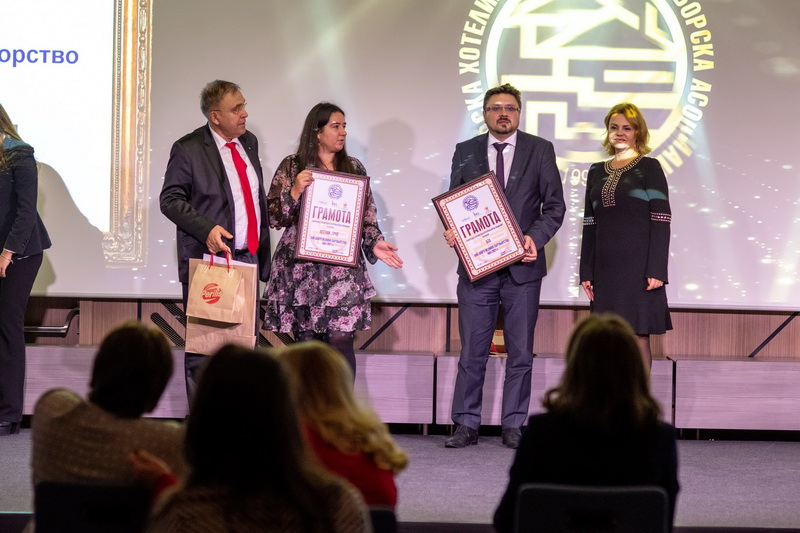 Наградата връчиха: Мая Никовска, директор на дирекция „Туристическа политика” на Министерството на туризма и Мариян Беляков, член на УС на БХРА