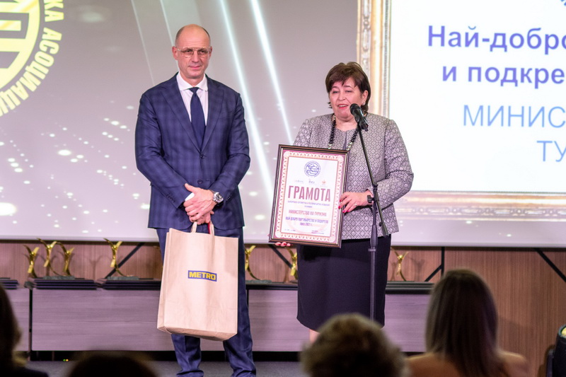 Наградата връчиха: Стела Балтова, служебен министър на туризма и Малин Бистрин, зам. председател на УС на БХРА