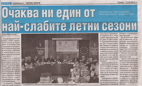 Успешно премина кръглата маса по проблемите и предизвикателствата пред туристически сезон – Лято 2015 г., провела са на 10 март 2015 г. в гр. Варна, със съдействието и съорганизацията на БХРА и АБЧО