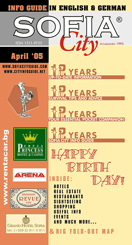 Месечния информационен справочник Sofia City Info Guide стана на 12 години. Вече с изцяло обновена визия, изданието продължава да предоставя на чужденците в София актуална информация за всичко от настаняване до забавления на два езика - английски и немски.